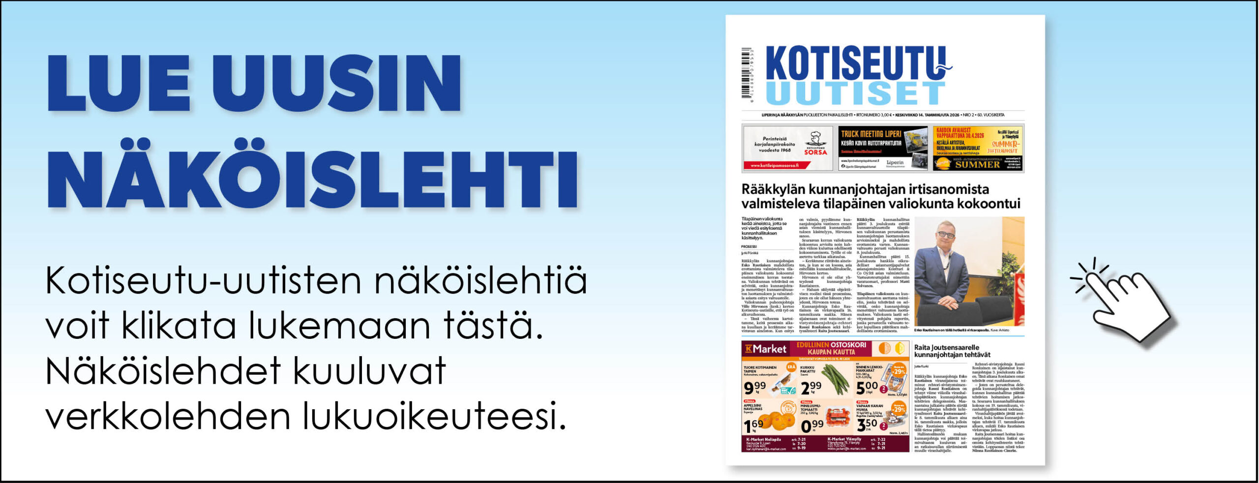 Ylämyllyn K-marketin kauppias Mikko Jaskari ottaa vastuulleen myös Noljakan K-marketin.