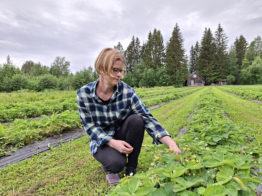 – Vettä olisin toukokuussa kaivannut, mutta sadosta on tulossa hyvä. Helteet kypsyttäisivät marjat nopeammin, nyt ne kasvavat lähinnä kokoa, hän kertoo mansikoiden tilanteesta.